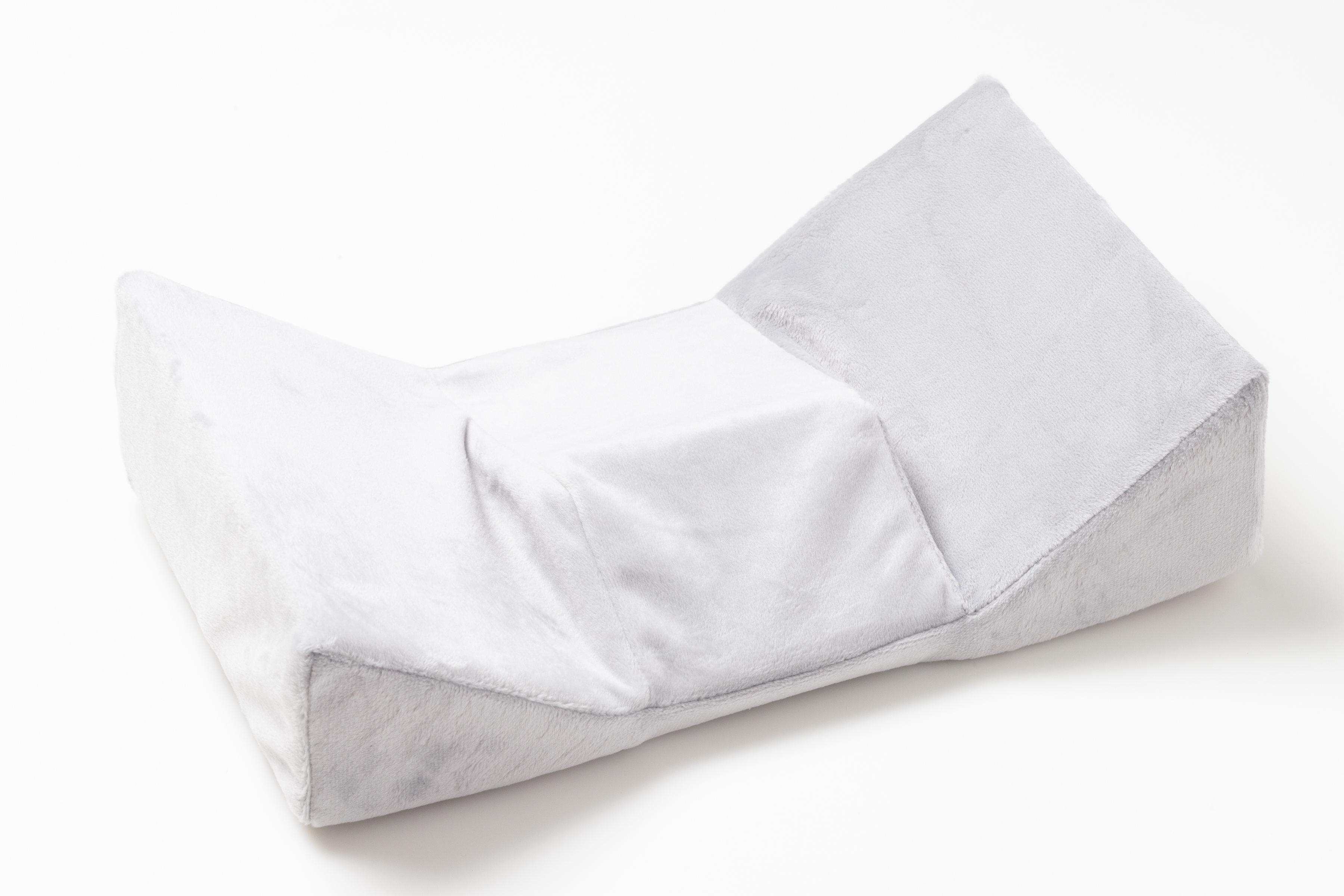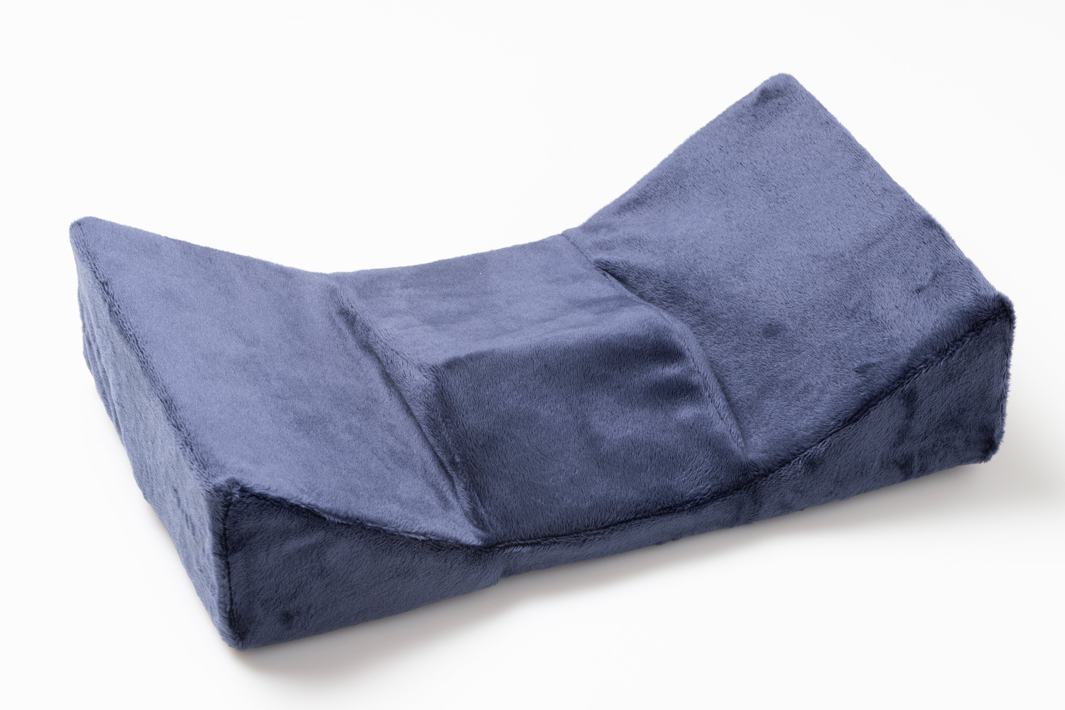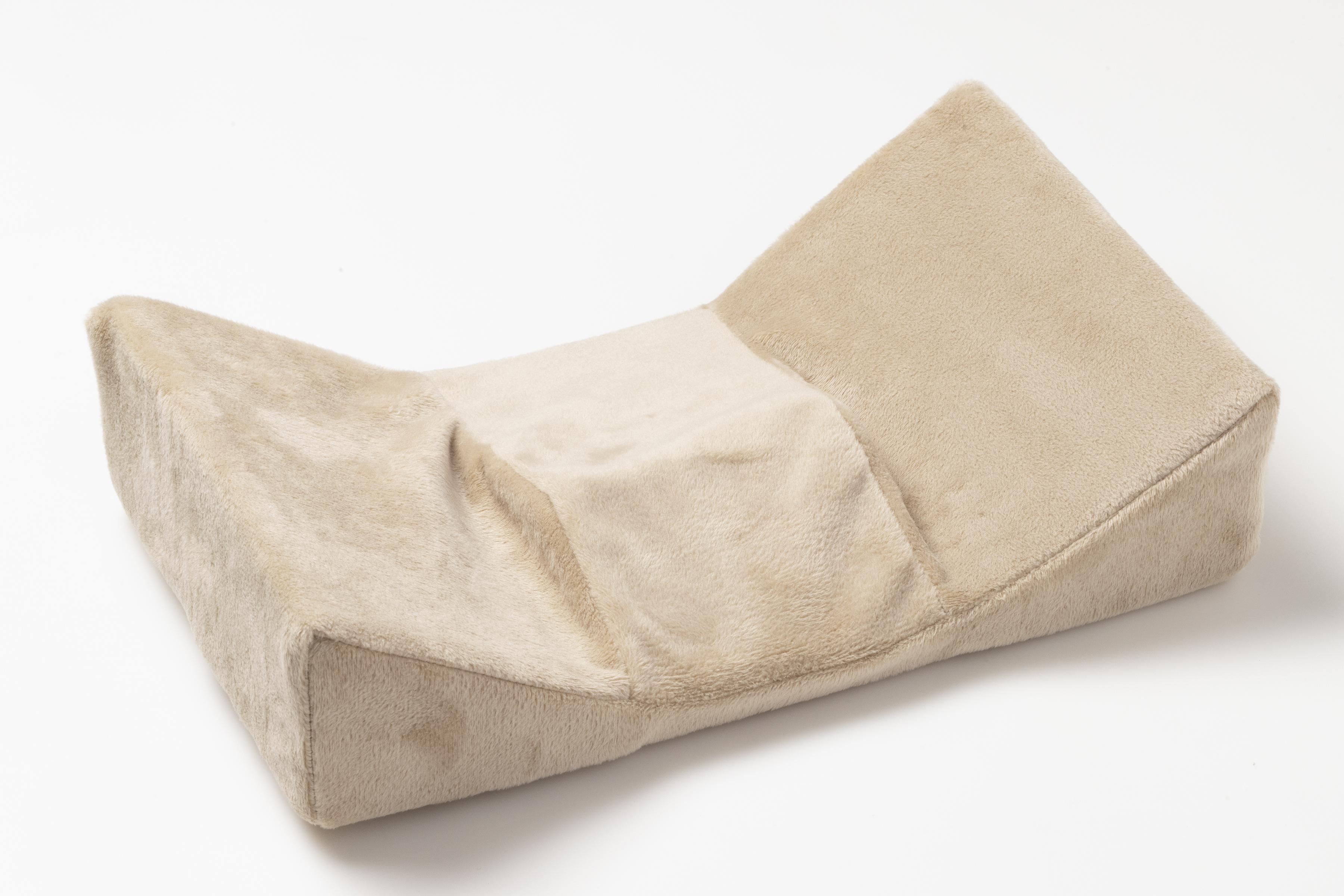 中央の、頭と首を支えるクッションの三角形の頂点が、首側に来るように置きます。